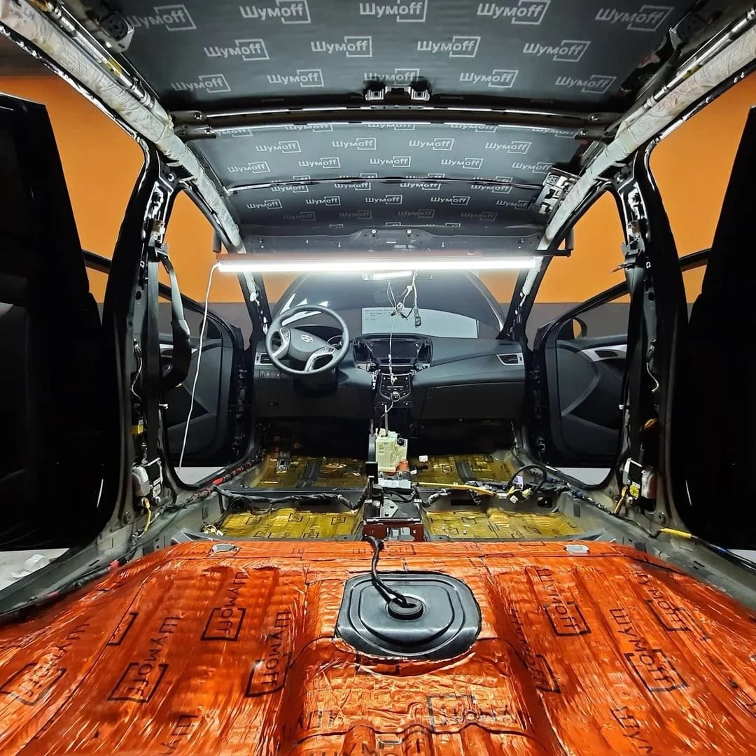 - Обязательно необходимо оклеивать колесные арки, двери, моторный щит, крышу и пол. Эти зоны самые вибронагруженные.